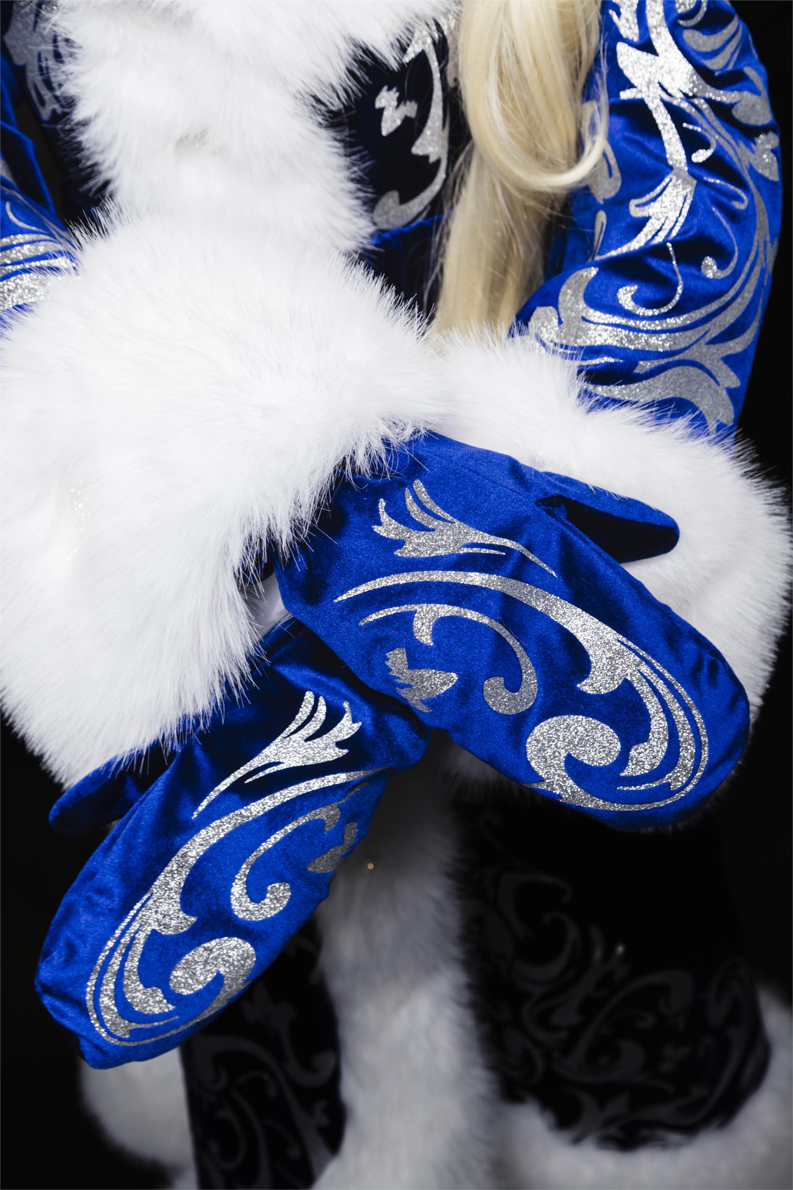 Детали: Костюм выполнен из материалов высокого качества: голубого бархата (основная ткань), белого пушистого мягкого меха (материалы сохраняют отличный внешний вид даже при интенсивной эксплуатации и после чистки). Модель костюма приталенная, с отрезной талией, с расширенным рукавом. Костюм на подкладе. Застежка супатная (скрытая) на пуговицы. На всем костюме нанесен узор. В комплект входят: шуба, шапка, варежки, пояс. Дополнительно рекомендуем приобрести – косу, кокошник. На последних фото размещена Снегурочка в кокошнике и в паре с подходящим костюмом Деда Мороза. Размеры 42, 44, 46, 48. Фото не подвергались какой-либо обработке в графических редакторах, товары, изображенные на фото, соответствуют действительности.