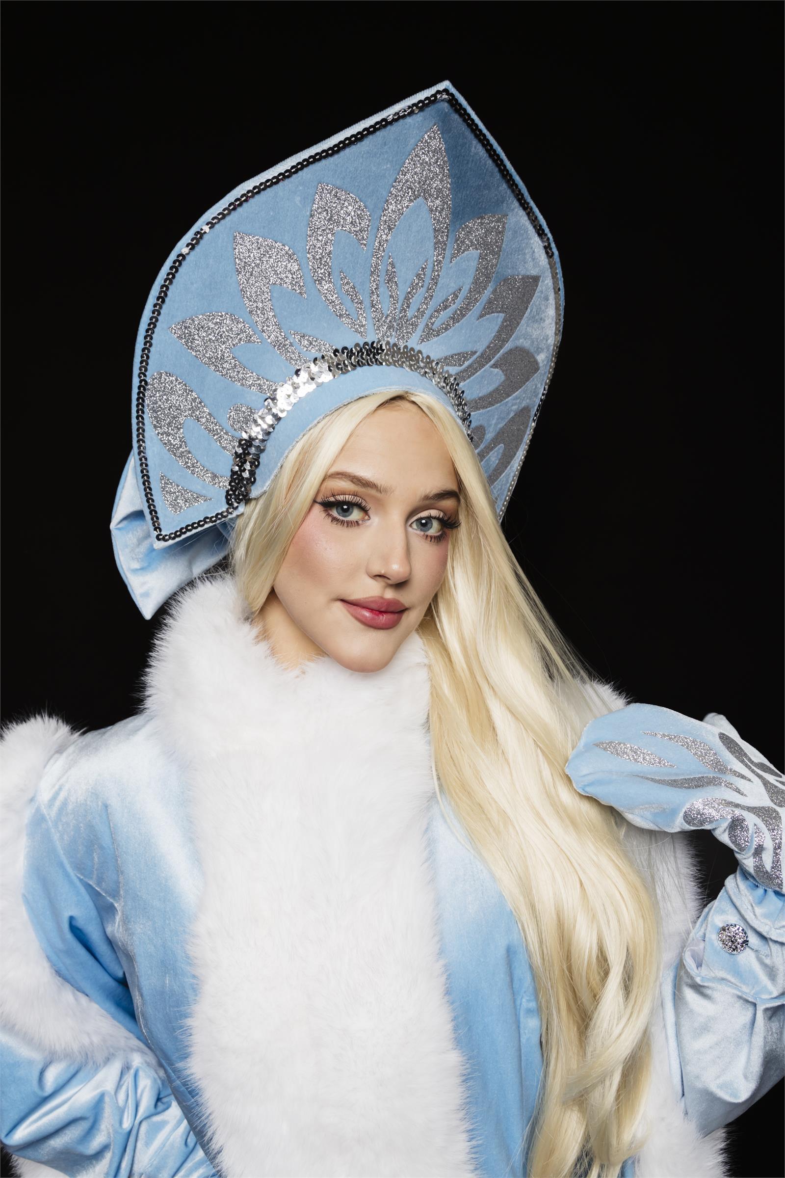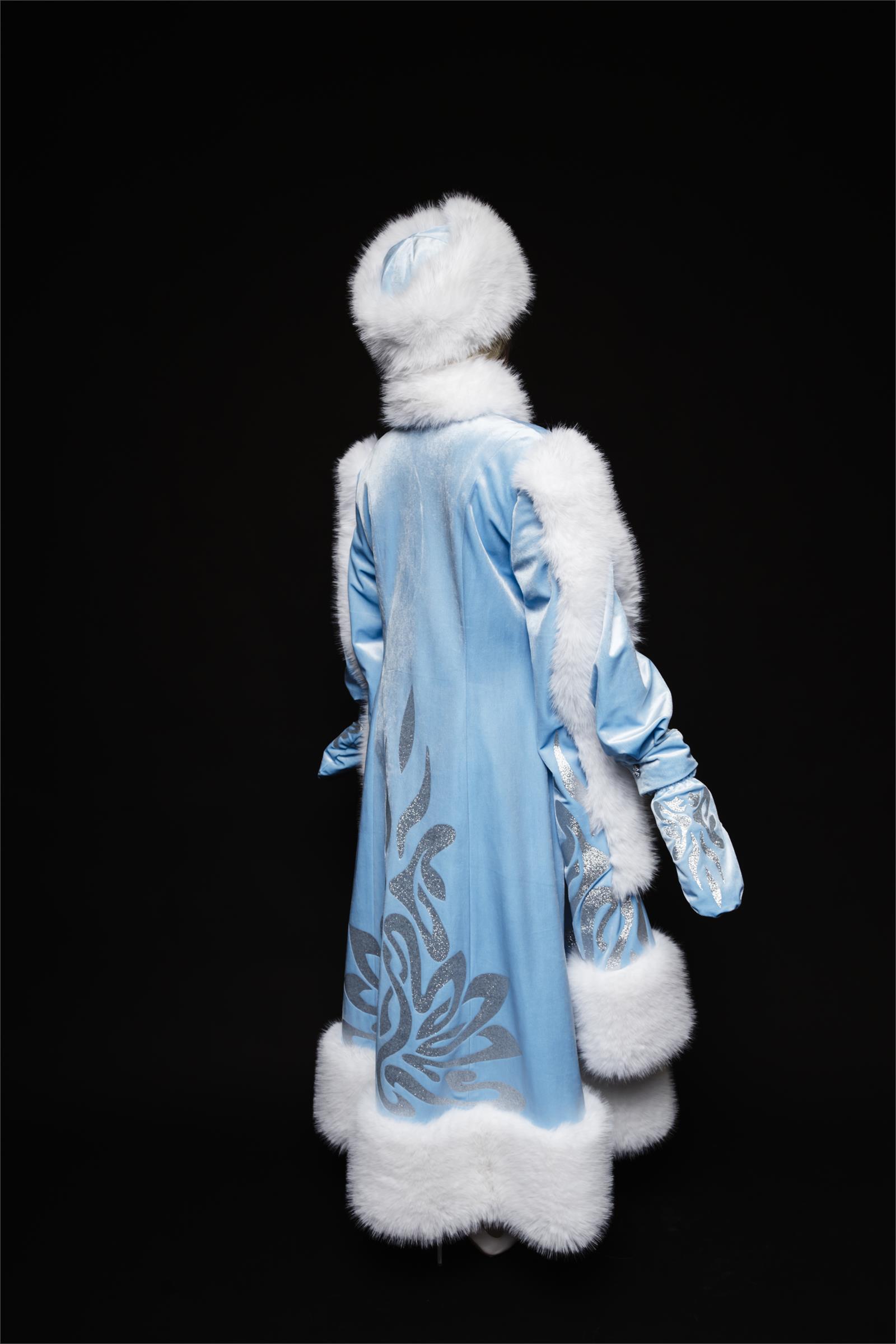 Детали: Костюм выполнен из материалов высокого качества: голубого бархата (основная ткань), белого пушистого мягкого меха (материалы сохраняют отличный внешний вид даже при интенсивной эксплуатации и после чистки). Модель костюма с двойным рукавом, внутренний рубашечный рукав. Костюм на подкладе. Застежка воздушная на пуговицы и петли. На всем костюме нанесен серебристый узор, с напылением. В комплект входят: шуба, шапка, варежки. Дополнительно рекомендуем приобрести – косу, кокошник. На последних фото размещена Снегурочка в кокошнике и в паре с подходящим костюмом Деда Мороза. Размеры 46, 48, 50. Фото не подвергались какой-либо обработке в графических редакторах, товары, изображенные на фото, соответствуют действительности.