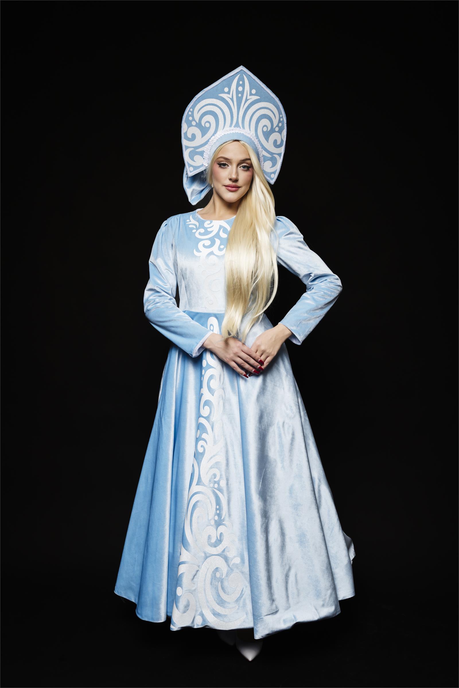 (в наличии: Костюм "Снегурочка Метелица" (узор белый с напылением блестками) в наличии)