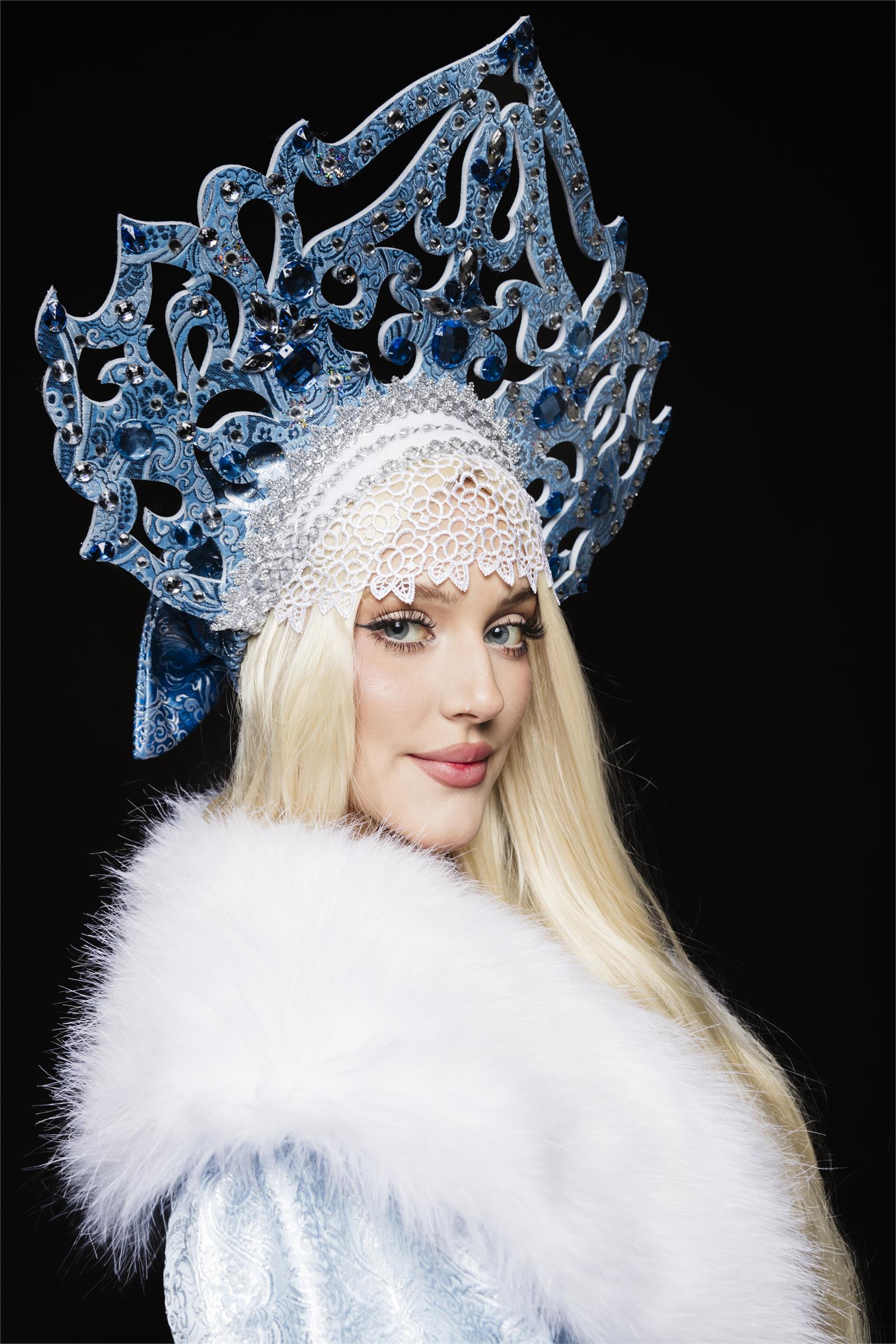Детали: Костюм выполнен из материалов высокого качества: голубой парчи (основная ткань шубки), паеточная ткань (платье), белого пушистого мягкого меха (материалы сохраняют отличный внешний вид даже при интенсивной эксплуатации и после чистки). В комплектность костюма входит: платье, сзади застегивается на потайную молнию. Шубка распашная с длинным отлетным рукавом. Костюм на подкладе. В комплект входят: шубка, платье, кокошник, пояс. Дополнительно рекомендуем приобрести – косу. Размеры 42, 44, 46, 48. Фото не подвергались какой-либо обработке в графических редакторах, товары, изображенные на фото, соответствуют действительности.